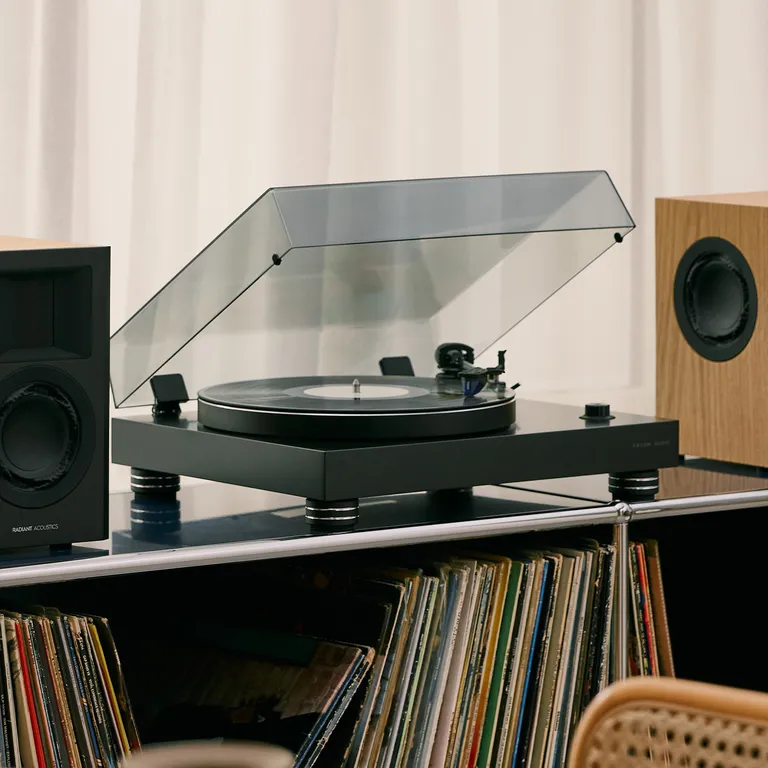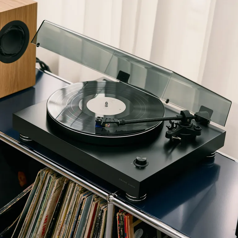- Levereras spelklar med skivspelarlock och fabriksmonterad pickup (Ortofon 2M Blue)
