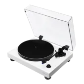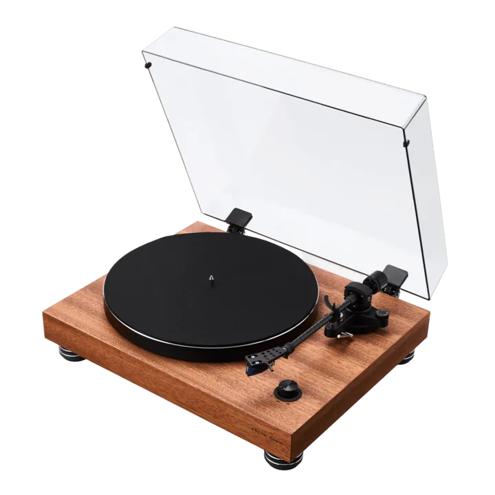 - Levereras spelklar med skivspelarlock och fabriksmonterad pickup (Ortofon 2M Blue)