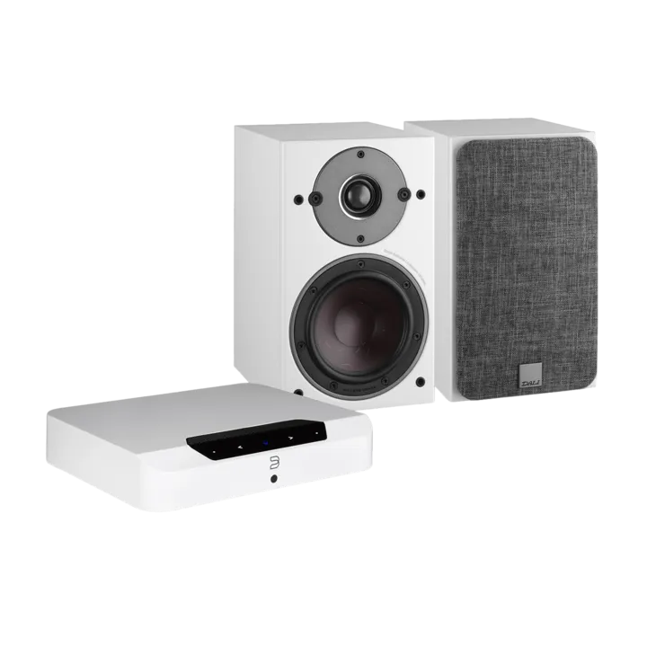 Tror du att små trådlösa högtalare är framtiden? Då får du tänka om – det finns nämligen fortfarande inget som kan matcha riktig hifi. Till den här superkompakta Bluesound-anläggningen har vi valt de superkompakta högtalarna OBERON 1 från danska DALI. En kombination som till 100 % är lika smart som så kallade ”smarthögtalare” men med ett flertal ess i skjortärmen samt en ljudkvalitet som ingen soundbar eller några små trådlösa högtalare någonsin kommer i närheten av.