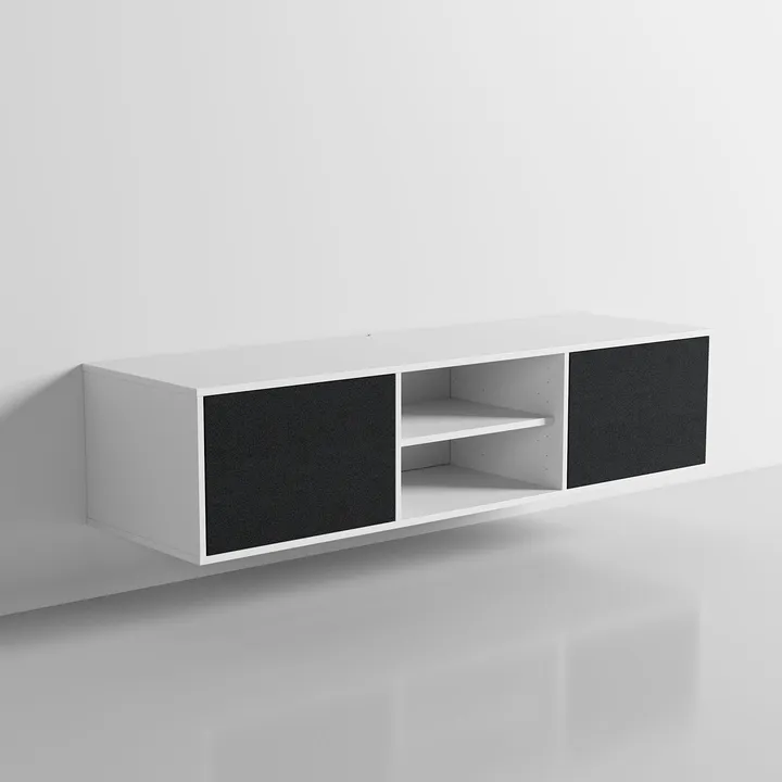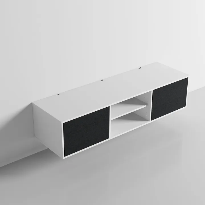 hith är designad för att hängas på väggen med hjälp av det medföljande väggfästet. Med denna lösning får du ett så rent visuellt uttryck som möjligt, samtidigt som dammsugning och städning under möbeln blir en enkel match. Väggfästet kan justeras, så du kan göra den slutliga anpassningen efter att hålen borrats i väggen. Det gör det mycket enklare att få möbeln perfekt monterad. Via väggfästet kan möbeln spännas mot väggen, så du undviker irriterande skrammelljud.
