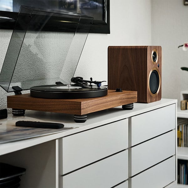 Här får du en hi-fi-känsla utan att spräcka budgeten. Den fabriksmonterade pickupen och den inbyggda RIAA-förstärkaren gör det enkelt att koppla skivspelaren direkt till ditt system eller aktiva högtalare.