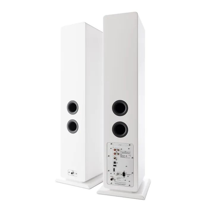 Det avancerade magnetsystemet hjälper också till att hålla membranen i ett järngrepp, från det kristallklara mellanregistret ända ned till 35 Hz, vilket är imponerande djupt för att vara en så här kompakt golvhögtalare. Om du vill ha ännu mer och bättre bas – till exempel i ett väldigt stort vardagsrum – kan du enkelt ansluta en aktiv subbas.