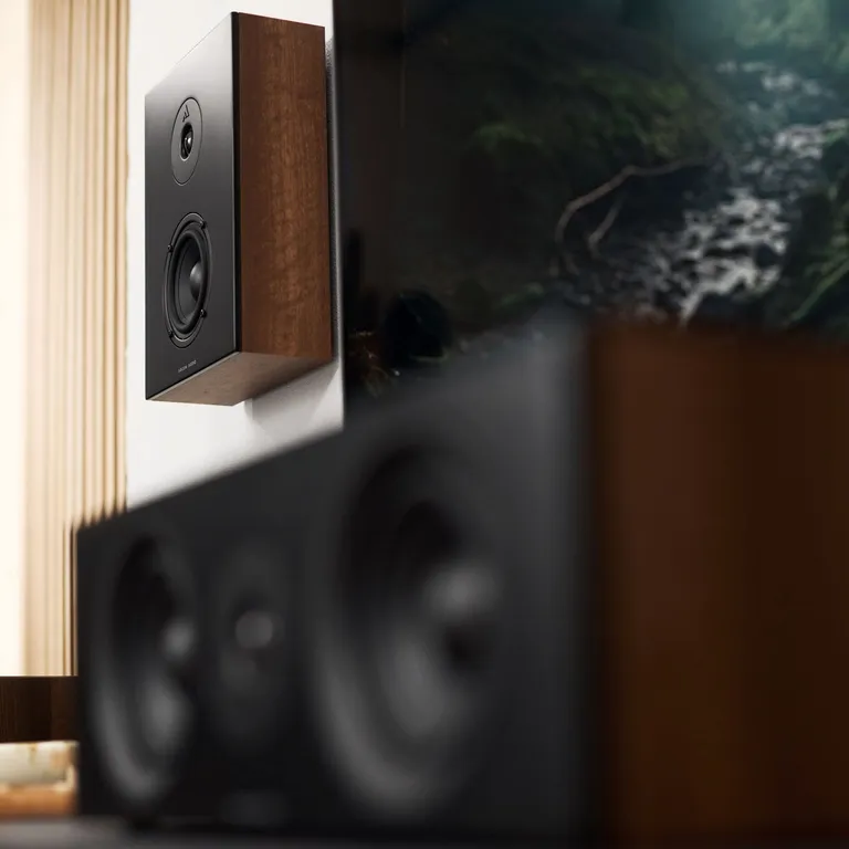 Du får integrerat nyckelhålsfäste för både lodrät och vågrät väggmontering, och den synliga delen av frontplattan är lackerad så att den framträder snyggt om du föredrar att använda högtalarna utan frontskydd. Du slipper också att se fula monteringshål i fronten eftersom ramen med fronttyget fästs med hjälp av magneter. Du kan välja bland flera eleganta finish-alternativ på kabinettet och göra dina högtalare till en naturlig del av din inredning.
