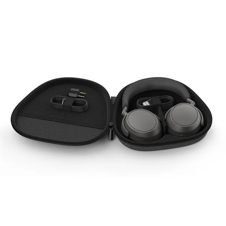 När du pratar i telefon hörs du kristallklart med hela 8 inbyggda mikrofoner, digital brusreducering och justerbar sidetone (medhörning på din egen röst). Komforten håller även den toppklass med mjuka öronkuddar och textilklädd huvudbygel, där vadderingen är extra mjuk i mitten där den vilar mot hjässan.