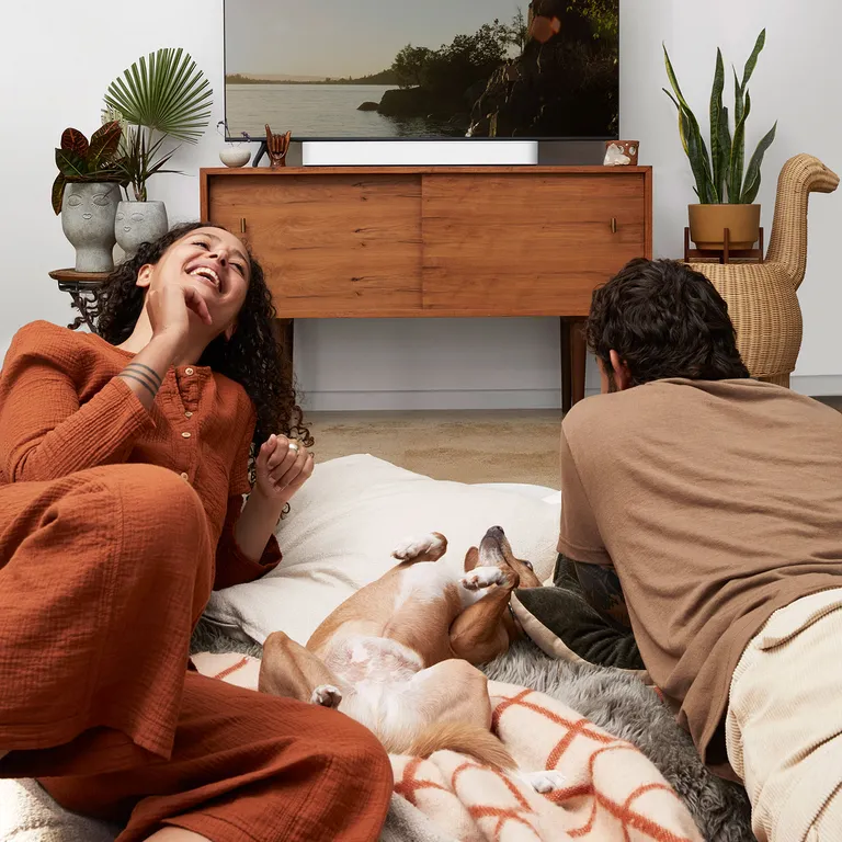 Sonos Beam är bara 65 cm bred, så den sticker inte ut över möbelkanten eller står i vägen för TV:n. Beam startas och stängs automatiskt tillsammans med TV:n, och du kan reglera ljudstyrkan med TV:ns fjärrkontroll. Ljudet är finjusterat för att ge dig tydlig återgivning av tal, och med Night Sound kan du dessutom få bättre lyssning vid låg ljudstyrka, till exempel sena kvällar när barnen nattats. Röststyrning med inbyggda mikrofoner sätter pricken över i på en redan suverän användarupplevelse.