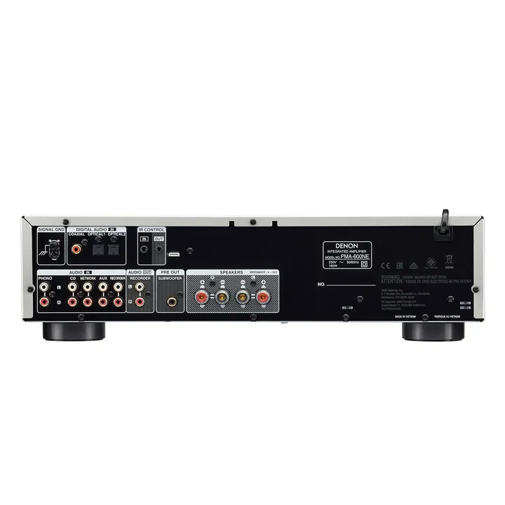 PMA-600NE har inbyggd D/A-omvandlare och både optiska och koaxiala ingångar. Därmed kan du ansluta dina digitala ljudkällor direkt, till exempel CD-spelare eller någon av Denons egna HEOS-musikstreamers. Om du vill sätta guldkant på dina filmupplevelser med läckert hifi-ljud i stereo kan du även koppla in din TV via en optisk kabel och reglera ljudet via förstärkarens fjärrkontroll.