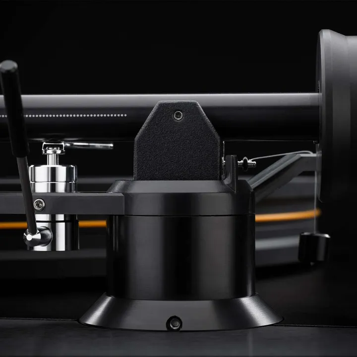 Växelströmsmotorn är på ett effektivt sätt mekaniskt frikopplad från plinten, även här med hjälp av avancerade dämpningsmaterial från Harmonic Resolution Systems (HRS) som är världens ledande företag inom vibrationsdämpning av ljudutrustning. De läckra dämpningsfötterna har också utvecklats i samarbete med HRS och isolerar effektivt skivspelaren mot vibrationer från både underlaget och luften. De kan naturligtvis justeras i höjdled så att du utan problem och på ett effektivt kan få skivspelaren i perfekt våg.