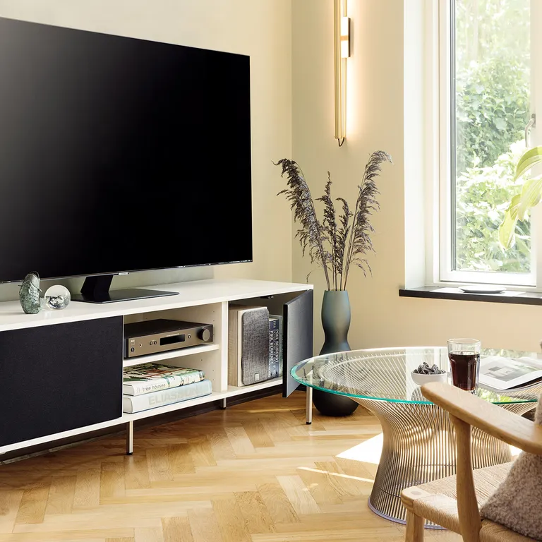 Den eleganta och noggrant uträknade kanten runt lättviktsmembranet garanterar att spridningen av ljudet blir mycket fin. Det betyder att du inte behöver sitta precis mitt framför högtalarna för att få ett övertygande stereoperspektiv. Här kan hela familjen vara med och lyssna utan att någon går missar något.