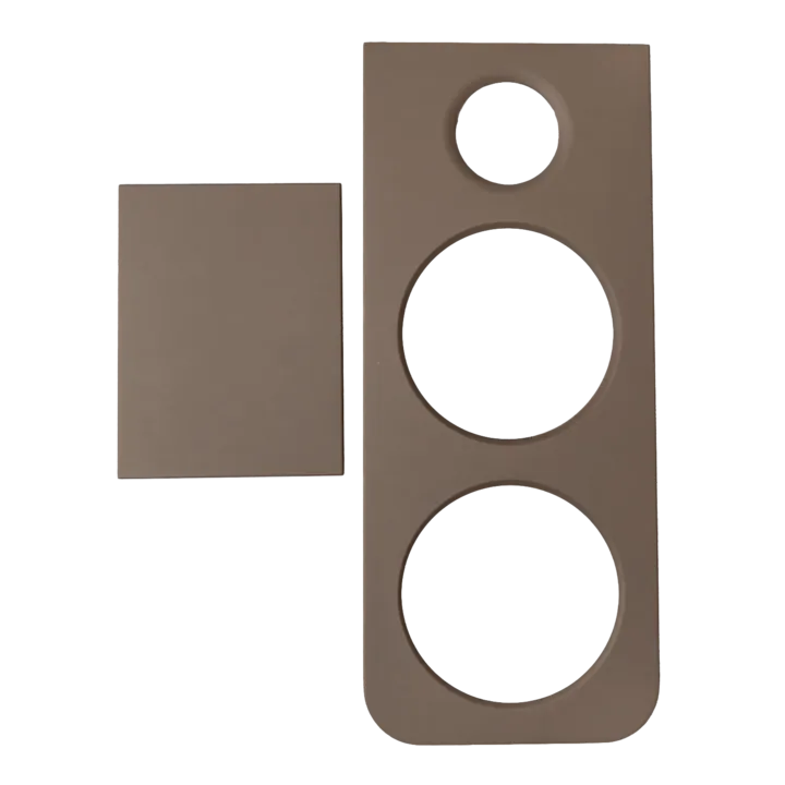 Skyddet har ett solitt utförande i MDF-platta och du kan byta ut det på ett ögonblick om du vill ge ditt vardagsrum en ny spännande touch. Observera att skyddet använder samma utfräsning i kabinettet som en eventuell tygfront. Därför kan de två inte monteras samtidigt.