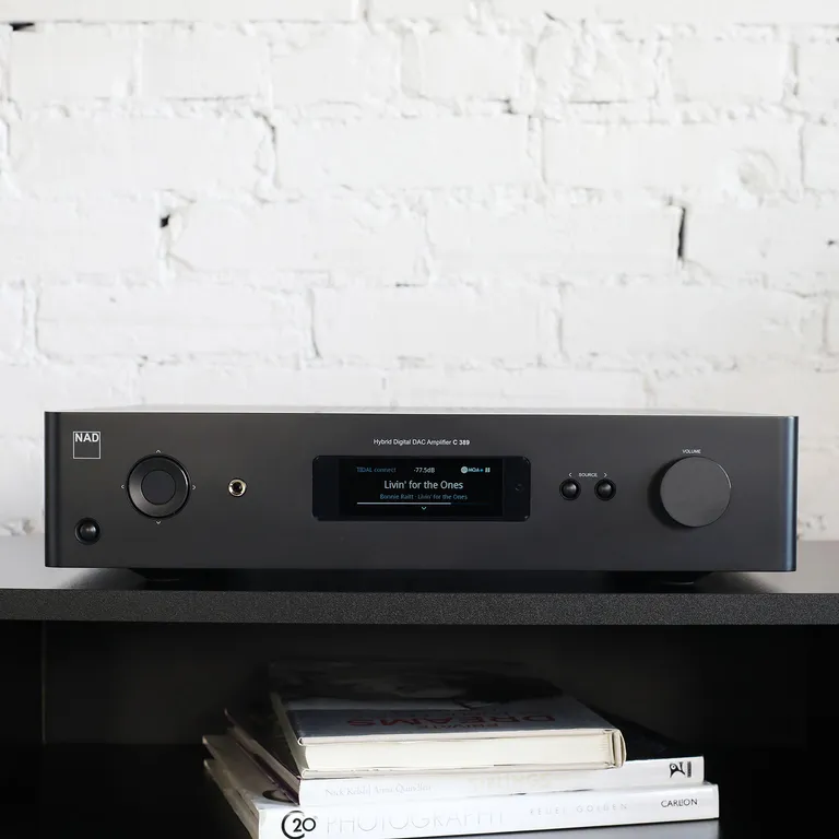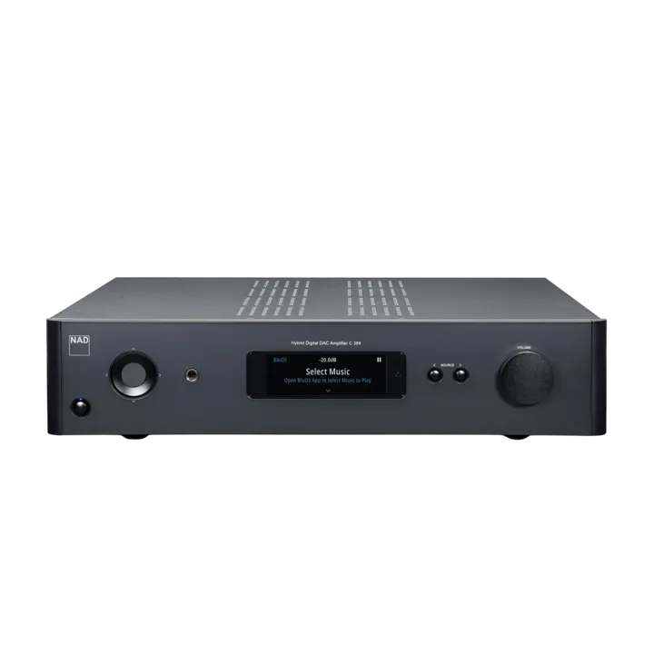 NAD C 389 – avancerad digital hybrid-stereoförstärkare med 2 x 130 watt, enastående ljudkvalitet och möjlighet till inbyggd Bluesound och Dirac-rumskorrektion