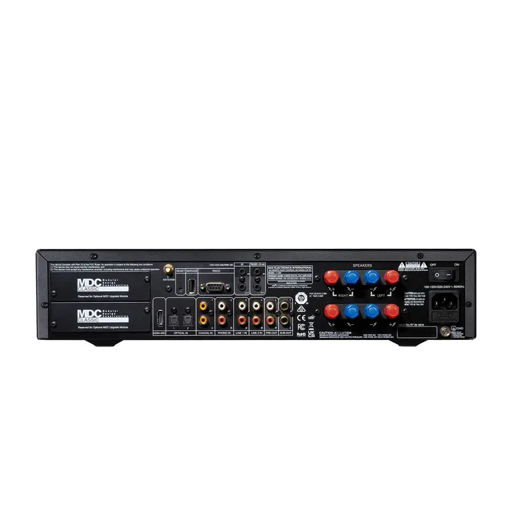 Men det behöver inte sluta där. Tack vare NAD:s geniala koncept med MDC2-moduler är C 389 nämligen redo för framtidens utmaningar och möjligheter, och på baksidan hittar du två platser för insticksmoduler, så du kan bygga ut med fler ingångar, streaming och nya tekniker.