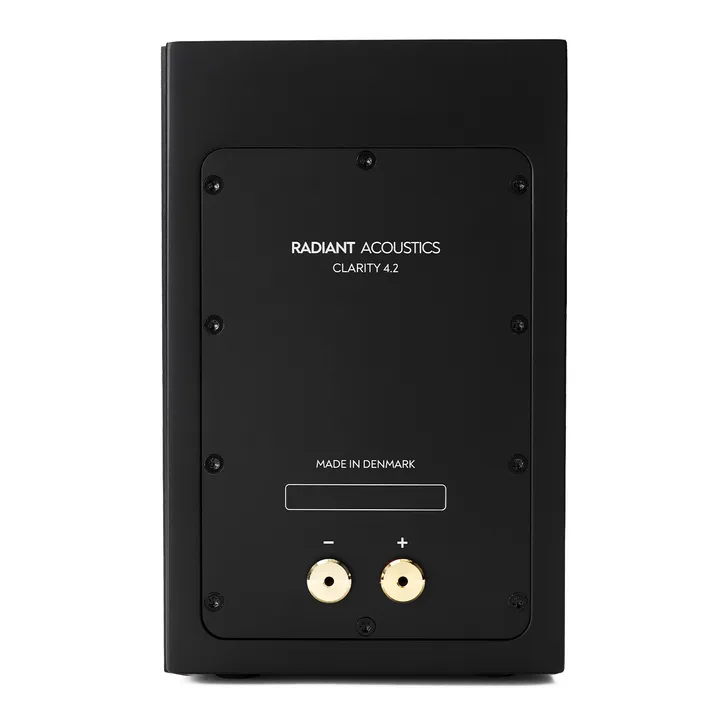 Radiant Acoustics Clarity 4.2 är en unik, exklusiv och superkompakt High End-högtalare som bygger på de revolutionerande högtalarelementen från danska Purifi Audio. Högtalaren är så liten att du absolut kan ha den stående på en TV-möbel, på en vägghylla eller i en bokhylla, men det är absolut inget litet över dess prestanda. Du kan lugnt vara beredd på att tappa hakan när det kristallklara ljudet och den otroliga basen strömmar ut i rummet.