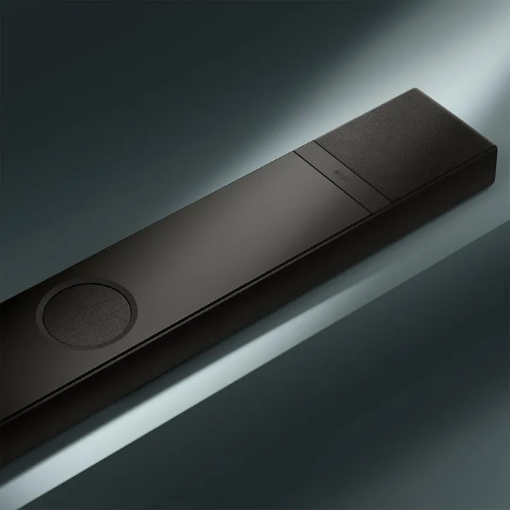 XIO är solida 121 cm bred, men med sin diskreta smala design verkar den fortfarande förbluffande kompakt och elegant oavsett om den hänger på väggen eller ligger på din TV-möbel. Ramen är tillverkad i äkta aluminium med stänksäker textil, vilket fulländar bilden av en produkt i högsta kvalitet.