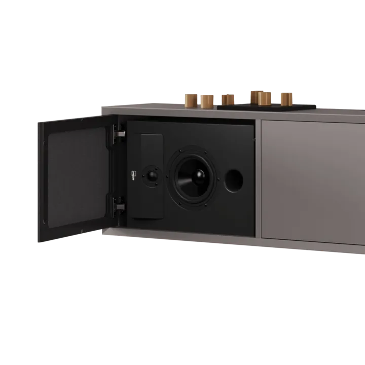 Softdome-diskanten har valts för sin låga vikt och linjära återgivning. Den säkerställer en suverän upplösning och musikalitet i ljudet och är monterad väldigt nära bas-/mellanregisterelementet för att optimera spridningen. Den speciella framskjutna och vinklade placeringen minimerar kantreflektioner från möbelns undersida och hjälper också till att fokusera ljudet i riktning mot din lyssningsposition.