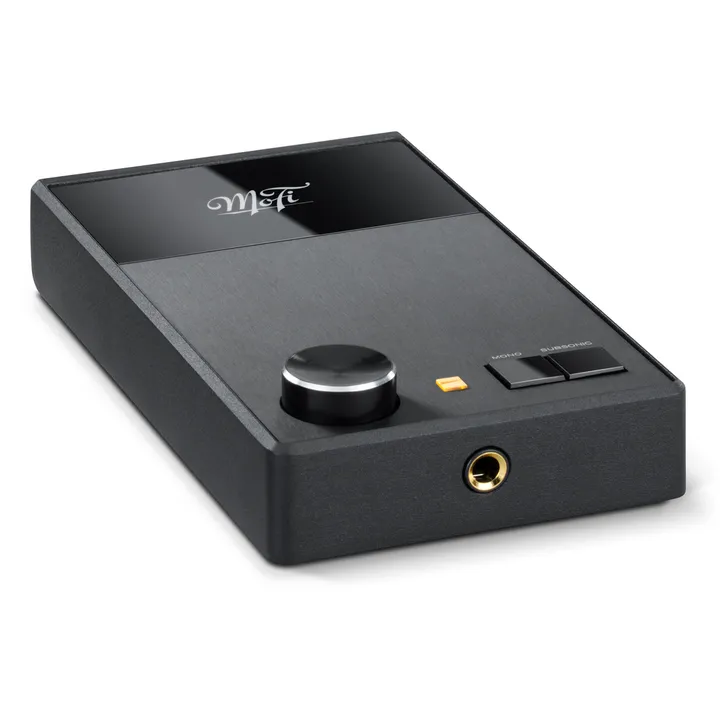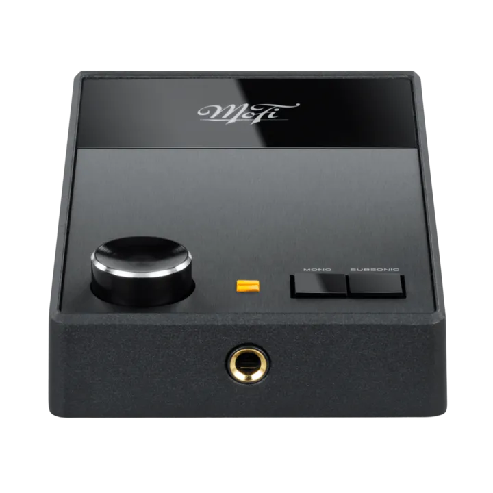 Det inbyggda subsoniska filtret i MoFi UltraPhono skyddar din förstärkare och dina högtalare mot oönskad ljudinformation under 20 Hz – till exempel från ojämna plattor – och det kan också skydda mot akustisk återkoppling om du spelar högt. Till- och frånkoppling sker enkelt via tryckknappen på ovansidan så att du bara har filtrering i signalvägen om du vill ha det. På samma ställe hittar du också en omkopplare för mono så att du kan få en helt optimal ljudupplevelse från gamla monoinspelningar som du kanske har i din skivsamling.