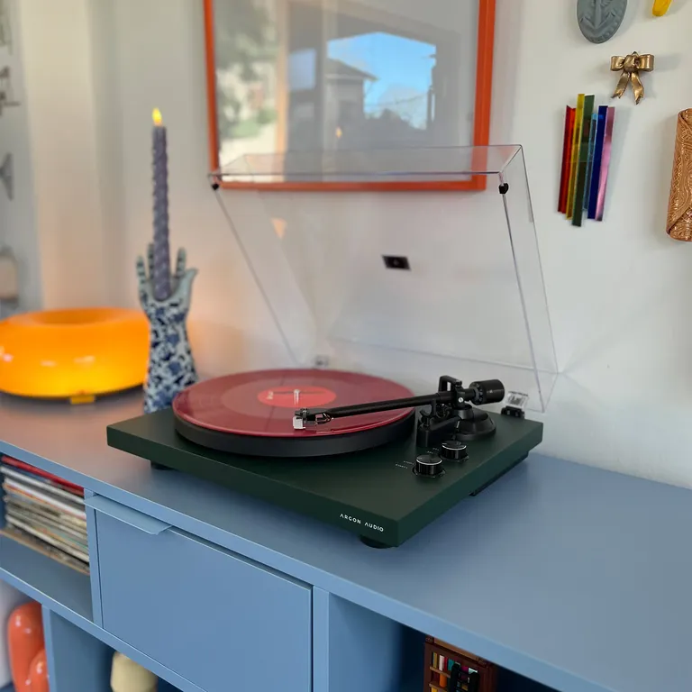 TT MK2 finns i flera snygga färger. Skivspelarlock, RCA-kabel och fabriksmonterad pickup medföljer.