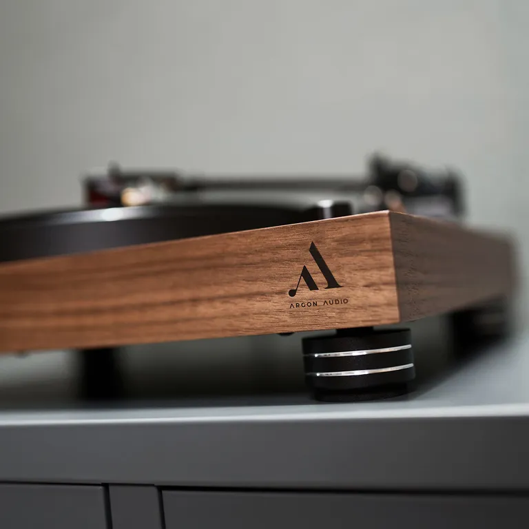 Argon Audio TT-4 finns med finish i lack eller äkta träfaner. Skivspelarlock och RCA-kabel medföljer.