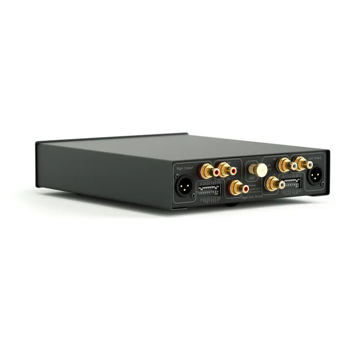 När du packar upp den är Hegel V10 konfigurerad som en eminent plug-and-play-RIAA-förstärkare för MM-pickuper. Det här är fullt tillräckligt för många användare, men om du har större ambitioner kan du via små omkopplare på baksidan (dip-switchar) anpassa gain och impedans optimalt för i stort sett varje MM- och MC-pickup på marknaden. Det gör V10 till en produkt du kan växa med – och en bra långsiktig investering.