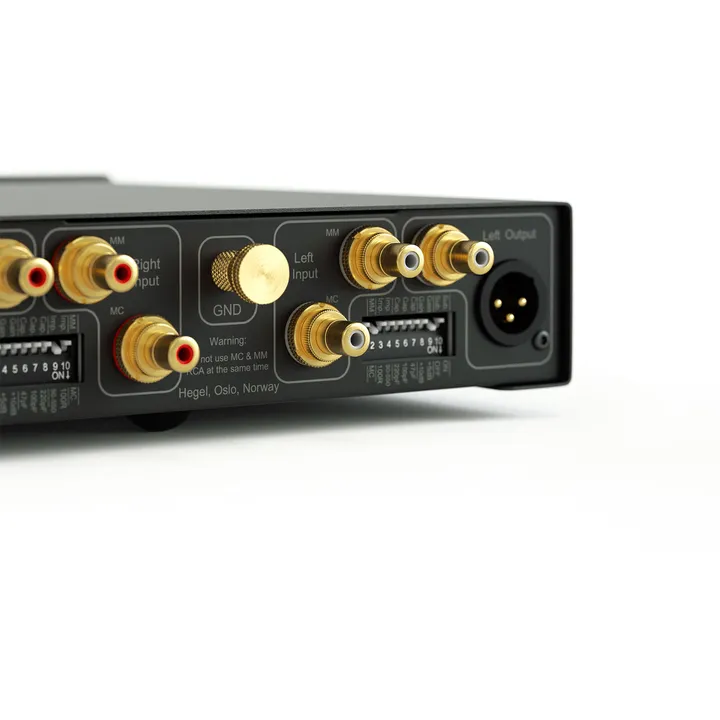 Exklusiva diskreta lösningar har valts hela vägen för att säkerställa den eftertraktade analoga Hegel-klangen, och både MM- och MC-ingången har bestyckats med JFET-transistorer med ultralåga brusnivåer. Hela vägen har fokus legat på att eliminera störningar, vilket även inkluderar den externa strömförsörjningen med solid E-kärnetransformator. RCA- och XLR-terminalerna är naturligtvis guldpläterade, så du kan lita på att du får optimal elektrisk kontakt under många år framöver.