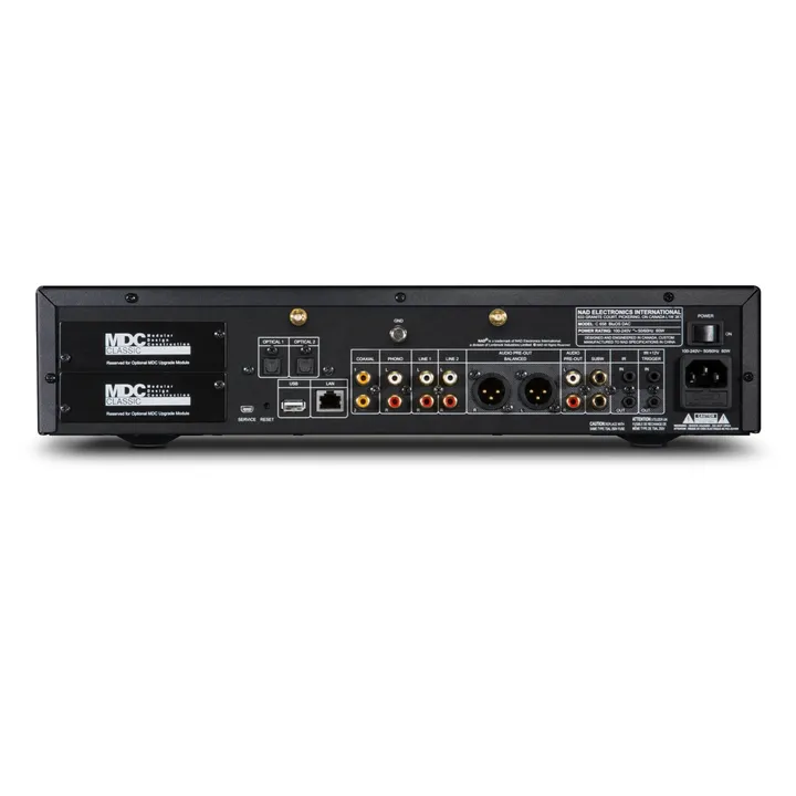 Om du vill ha ännu mer av det goda har C 658 dessutom två platser för NAD:s geniala MDC-uppgraderingsmoduler. Det gör att du till exempel kan välja att uppgradera med en HDMI-modul och få suveränt HD-ljud i stereo från Blu-ray, HD-spelkonsol, digitalbox m.m. Andra moduler kan bli tillgängliga senare i takt med att den tekniska utvecklingen går framåt.