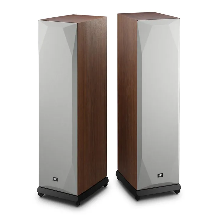 MoFi SourcePoint 888 finns i flera utföranden. Frontgrill ingår (svart tyg för svart finish, vitt tyg för valnöt och vit finish).