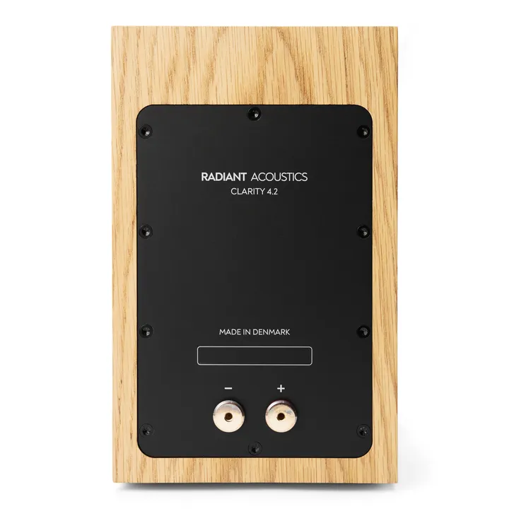 Radiant Acoustics Clarity 4.2 är en unik, exklusiv och superkompakt High End-högtalare som bygger på de revolutionerande högtalarelementen från danska Purifi Audio. Högtalaren är så liten att du absolut kan ha den stående på en TV-möbel, på en vägghylla eller i en bokhylla, men det är absolut inget litet över dess prestanda. Du kan lugnt vara beredd på att tappa hakan när det kristallklara ljudet och den otroliga basen strömmar ut i rummet.