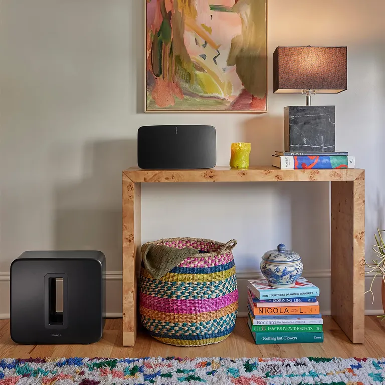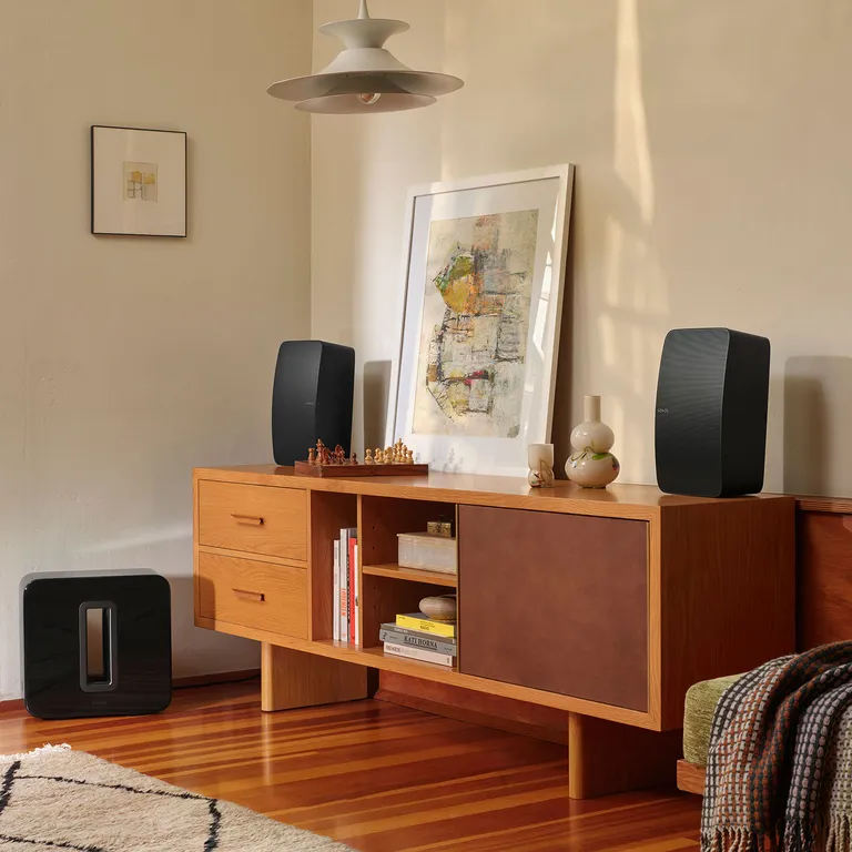 Om du vill ha ännu mer och bättre ljud behöver du bara koppla ihop två Sonos Five i ’stereo mode’ – så skapar systemet själv höger och vänster kanal. Och om du kompletterar med en trådlös Sonos-subbas har du en komplett och trådlösstereoanläggning som ger dig möjlighet att dra på rejält i ett vanligt vardagsrum.