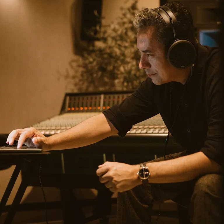 Huvudbygeln är solitt konstruerad i metall och äkta läder. Den breda designen fördelar vikten mjukt och jämnt så att du upplever att den massiva konstruktionen tynger mycket mindre på huvudet än du först skulle kunna tro. Den flexibla flätade lättviktskabeln bidrar också till att hålla komforten uppe.
