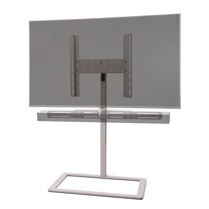 Du kan köpa till ett specialdesignat fäste om du vill ha plats för din soundbar under TV:n. Kablarna kan du dölja inuti pelaren, så att du inte förstör det eleganta intrycket med trassliga kabelhärvor.