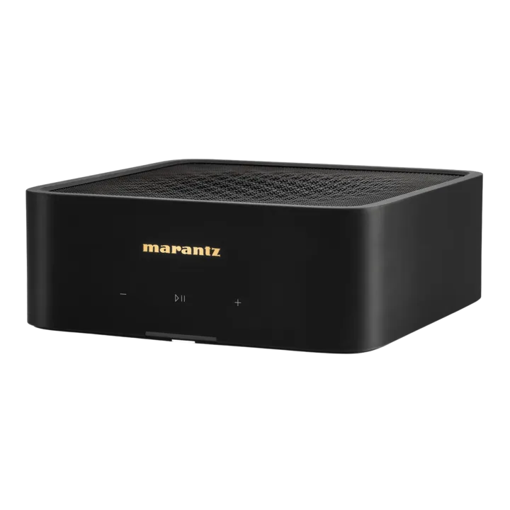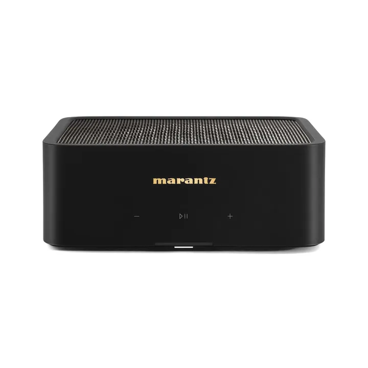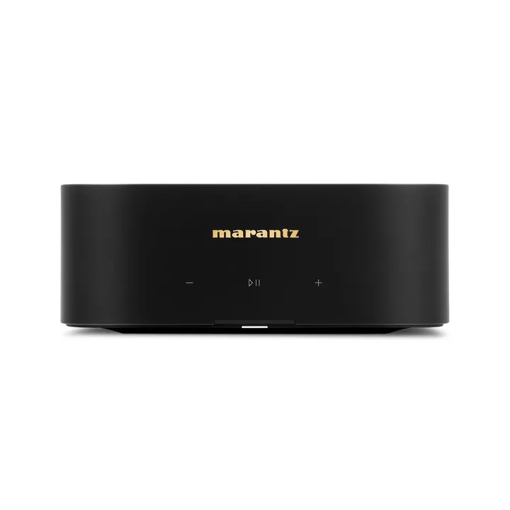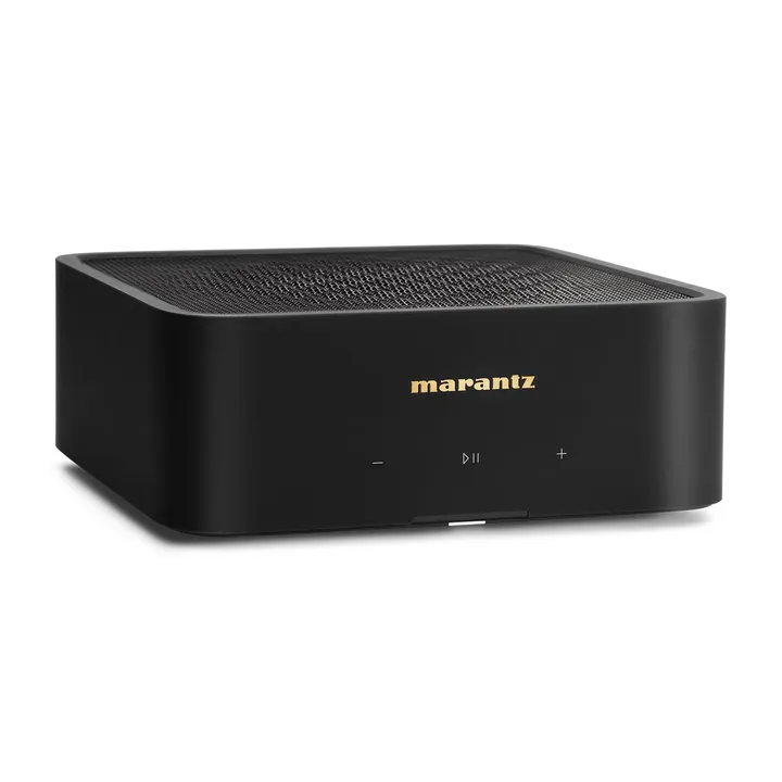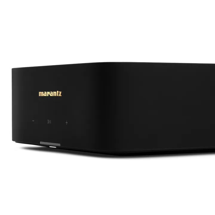 På frontplattan hittar du den eleganta gyllene Marantz-loggan och diskreta touchknappar för grundläggande funktioner som ljudstyrka, play/paus m.m. Daglig hantering, som val av musik, ordnar du direkt från din telefon, och om du verkligen vill kan du utan problem placera MODEL M1 utom synhåll, t.ex. i ett skåp eller en hifi-möbel. Om du vill använda den i en installation kan du placera två stycken vid sidan om varandra i ett vanligt 19-tumsrack.