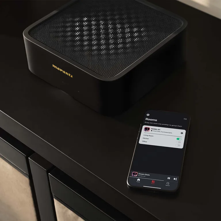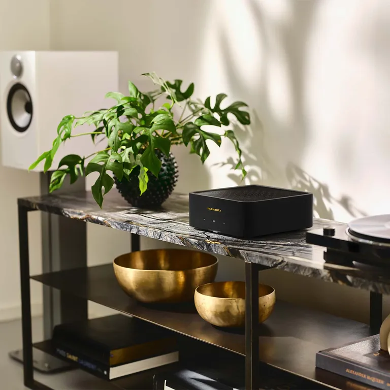 Marantz MODEL M1 – exklusiv och superkompakt trådlös musikanläggning med supersmidigt TV-ljud via HDMI, trådlös musikstreaming via HEOS och varmt och musikaliskt ljud
