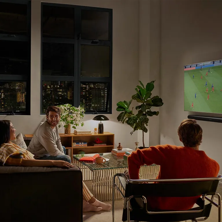 Även om det inte är en komplett, äkta surround-hemmabio så får du fortfarande ett filmljud som gör dagens fina bildkvalitet rättvisa – och det helt utan den konfiguration och de långa kablar du får med en traditionell lösning. Och du kan naturligtvis reglera ljudstyrkan via TV:ns egen fjärrkontroll. Så enkelt och elegant går det alltså att lösa.