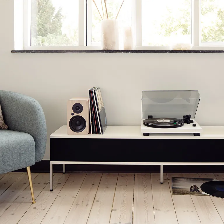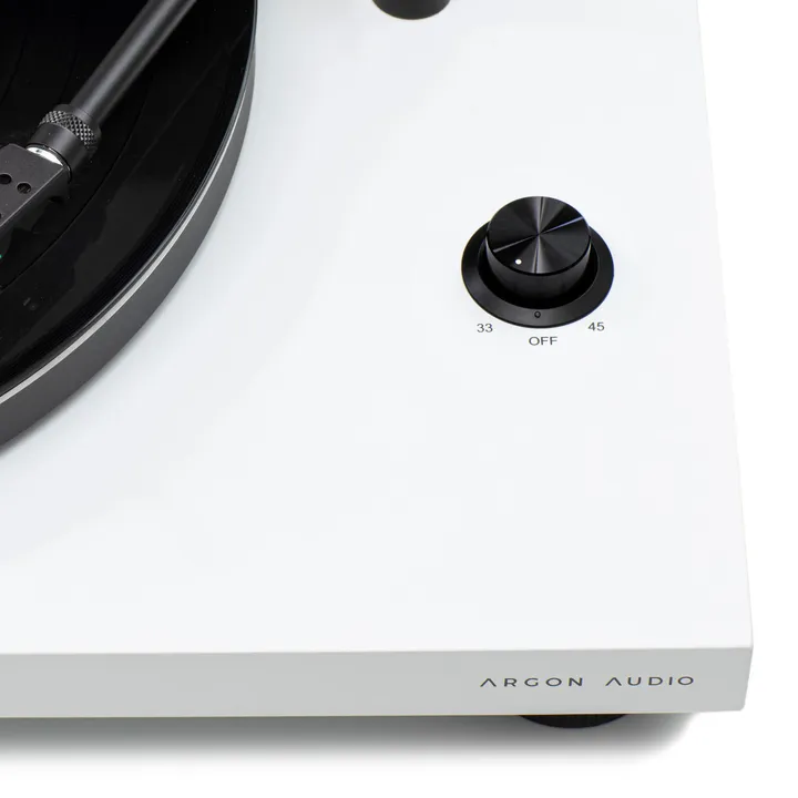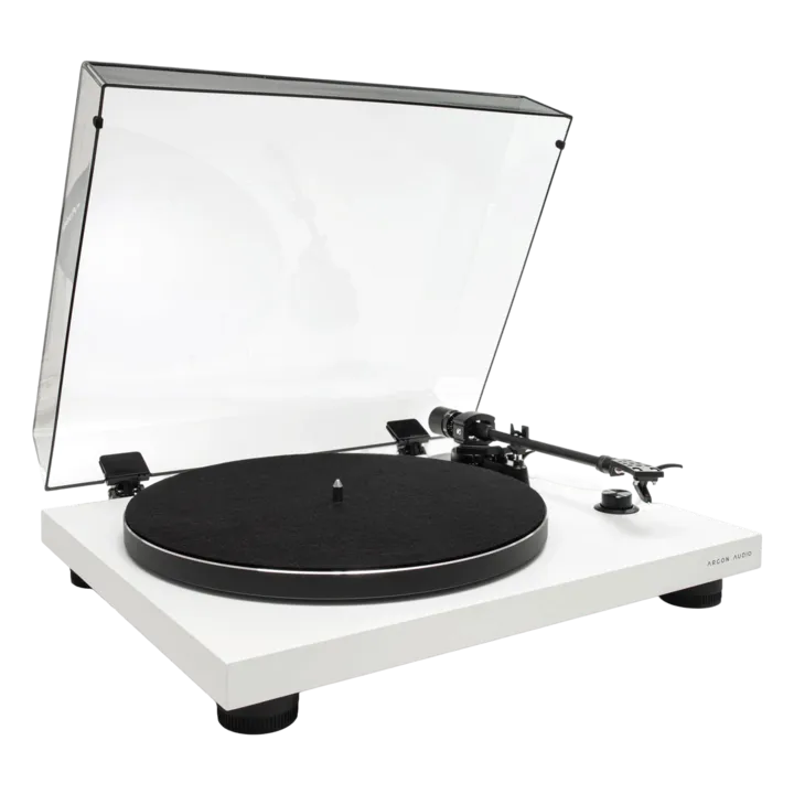 Argon Audio TT-3 finns med finish i svart lack, vit lack eller ljus ask. Skivspelarlock och RCA-kabel medföljer.