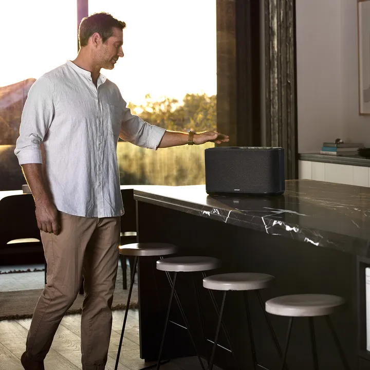 Även om Denon Home 350 tar sin plats på hyllan är den fortfarande mycket mer diskret och behändig än en traditionell stereoanläggning med separata högtalare. Och tack vare det exklusiva utförandet i ljust eller mörkt tyg hittar du lätt en placering som gör både högtalaren och inredningen full rättvisa.