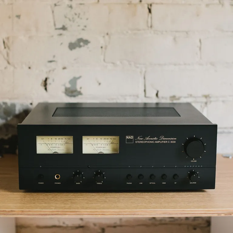 C 3030 från kanadensiska NAD är en unik och mycket välspelande stereoförstärkare, skapad som en hyllning till den klassiska 3030-modellen från 70-talet. Retro-detaljerna inkluderar traditionella höger/vänster VU-mätare, tryckknappar för val av ingång och NAD:s ursprungliga ”New Acoustic Dimension” i vackert sirlig kursiv stil på fronten.