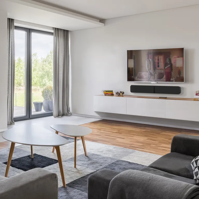 PULSE SOUNDBAR+ är optimerad för stereoljud, och därför kommer du att bli förvånad över hur bra den spelar musik via de åtta inbyggda högtalarna. Men med hjälp av den nya enormt kraftfulla processorn och Dolby Atmos-algoritmerna blir din stereo-soundbar en virtuell hemmabio utan att du är beroende av tak och väggar för att skapa surround-effekten, vilket är fallet hos många alternativ. Om du vill ha en ännu bättre surround-känsla kan du lägga till två trådlösa bakhögtalare – till exempel PULSE FLEX 2i – och få en ännu mer övertygande upplevelse av ditt filmljud.