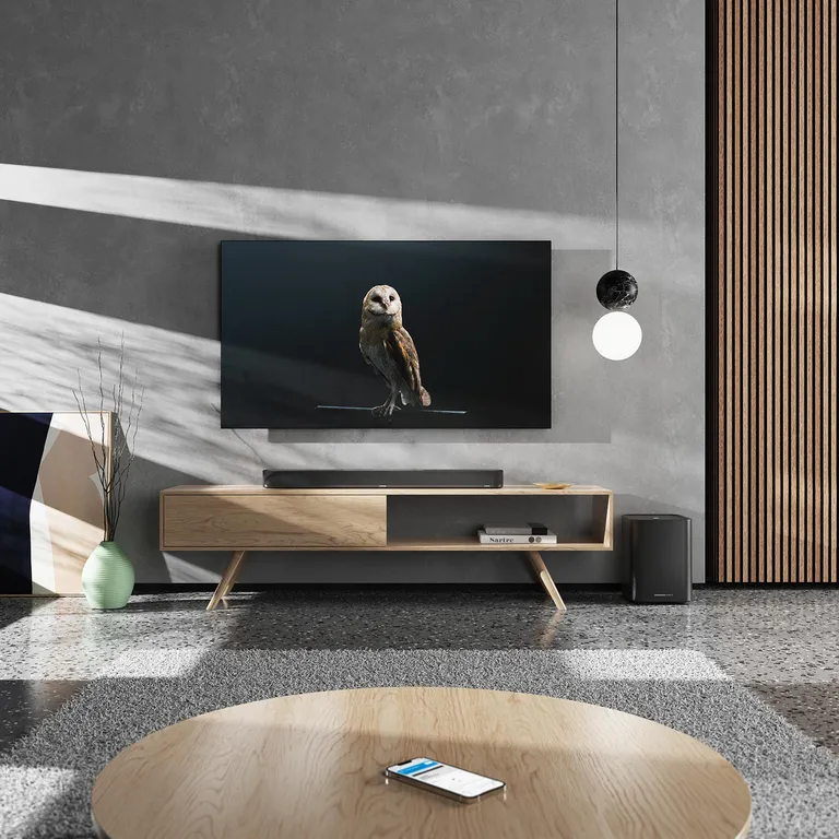 - En AMBEO-soundbar kan byggas ut med upp till fyra trådlösa AMBEO Sub
