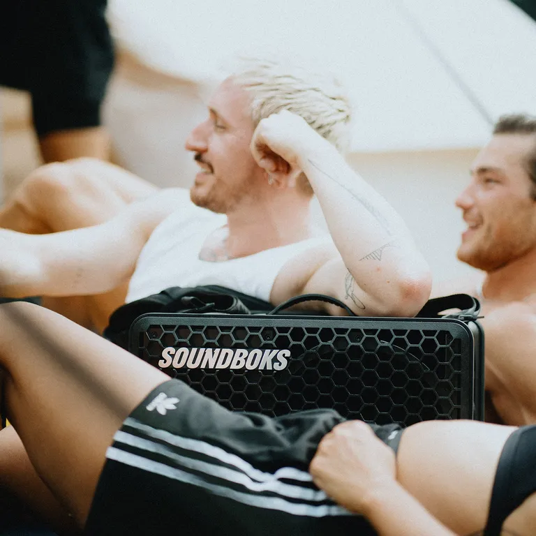 Med ett extra batteri är du också redo för nästa dag på festivalcampingen där det inte direkt vimlar av lediga stickkontakter. SOUNDBOKS Go använder samma batteri som den större SOUNDBOKS (Gen. 3), så du och dina vänner kan hjälpas åt med extra ström om någon av er skulle få strömtorsk mitt i musiken. Du kan också använda TeamUP-funktionen för att parkoppla din och dina vänners SOUNDBOKS trådlöst – du kan alltså få ännu mer ljud och njuta av riktig stereo.