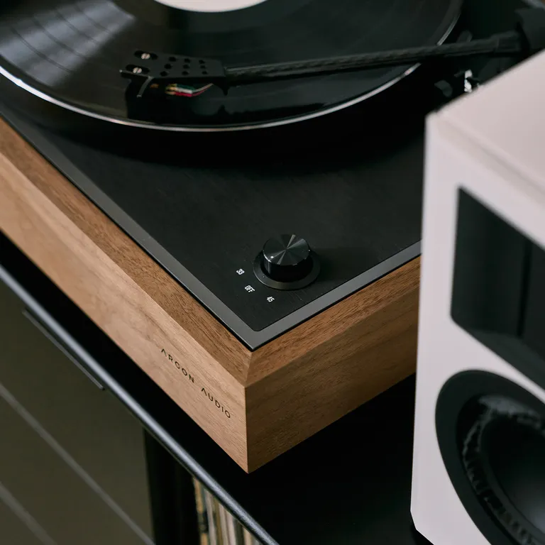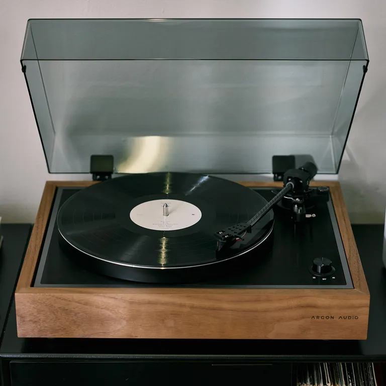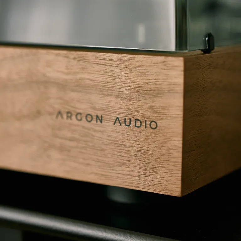 Argon Audio TT Signature finns med finish i äkta träfaner. Ortofon 2M Black-pickup, skivspelarlock och RCA-kabel medföljer.