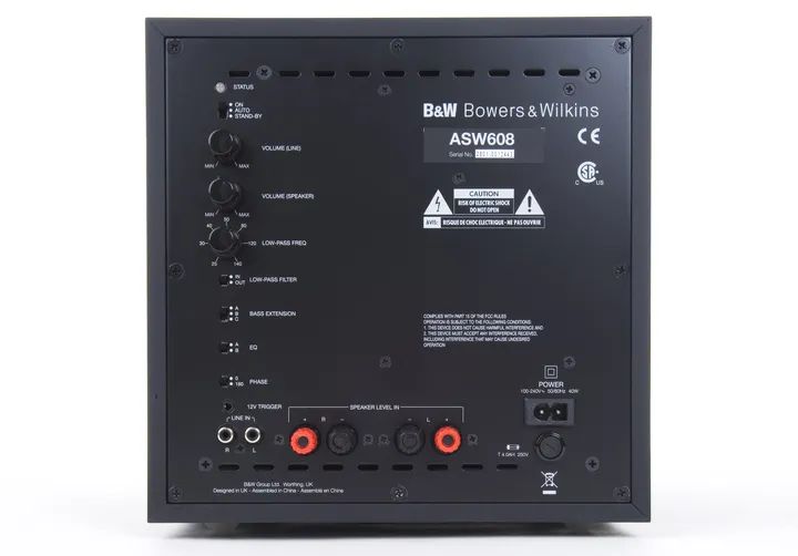 ASW608 har ett slutet kabinett utan reflexport – en konstruktion som ställer enorma krav på både kabinettet, förstärkaren och inte minst elementet. Teoretiskt sett så skulle en konstruktion med så här kompakta dimensioner inte kunna spela så värst djup bas, men Bowers & Wilkins ”lurar” fysikens lagar med en inbyggd equalizer-krets som förstärker den djupaste basen elektroniskt innan signalen skickas till elementet.