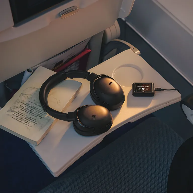 Som en läcker och väldigt användbar detalj kan du ansluta en extern ljudkälla till den trådlösa via någon av minijack- eller USB-C-kablarna som medföljer. Dongeln ordnar då så att signalen skickas vidare till öronkåporna. Det betyder att du även kan njuta av bra ljud med full trådlös frihet och Smart Noise Cancelling medan du jobbar på din laptop, spelar spel eller ser en film via planets underhållningssystem under en långflygning.