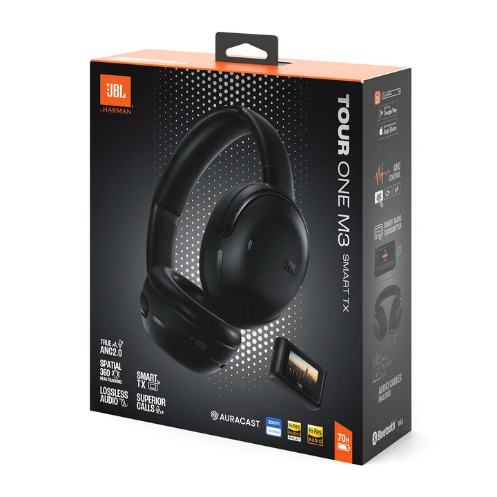 Med Tour One M3 SMART TX får du så många smarta finesser att du nästan tappar andan. Utöver den smarta trådlösa sändaren får du bland annat JBL Spatial 360-ljud med Head Tracking, förlustfri digital avspelning från dator m.m. via USB-C-anslutning, avancerad noise cancellation med Smart Talk och ljudförstärkning av röster, suverän samtalskvalitet samt en uppsjö av möjligheter i den dedikerade JBL Headphones-appen.