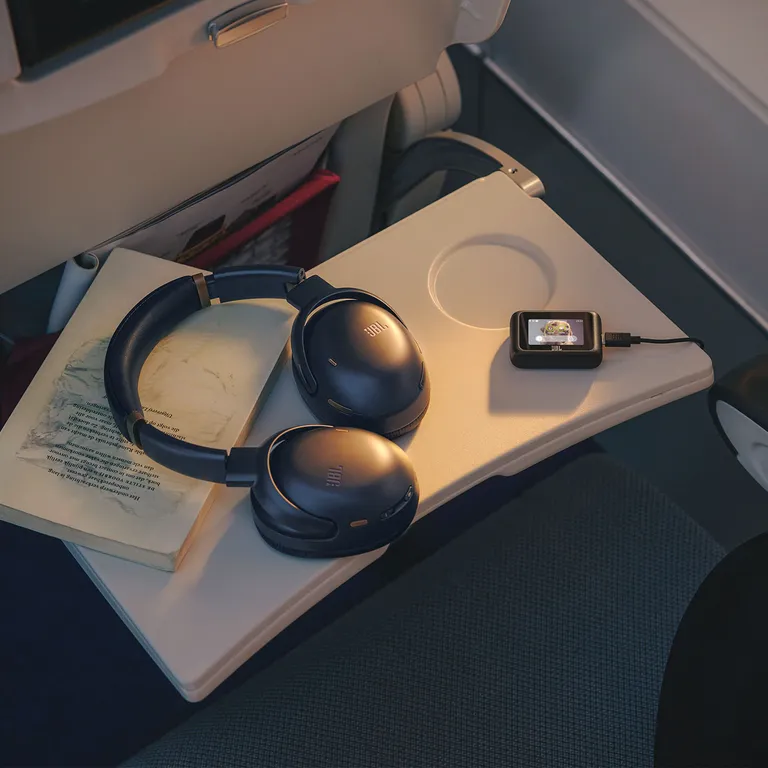 Som en läcker och väldigt användbar detalj kan du ansluta en extern ljudkälla till den trådlösa via någon av minijack- eller USB-C-kablarna som medföljer. Dongeln ordnar då så att signalen skickas vidare till öronkåporna. Det betyder att du även kan njuta av bra ljud med full trådlös frihet och Smart Noise Cancelling medan du jobbar på din laptop, spelar spel eller ser en film via planets underhållningssystem under en långflygning.