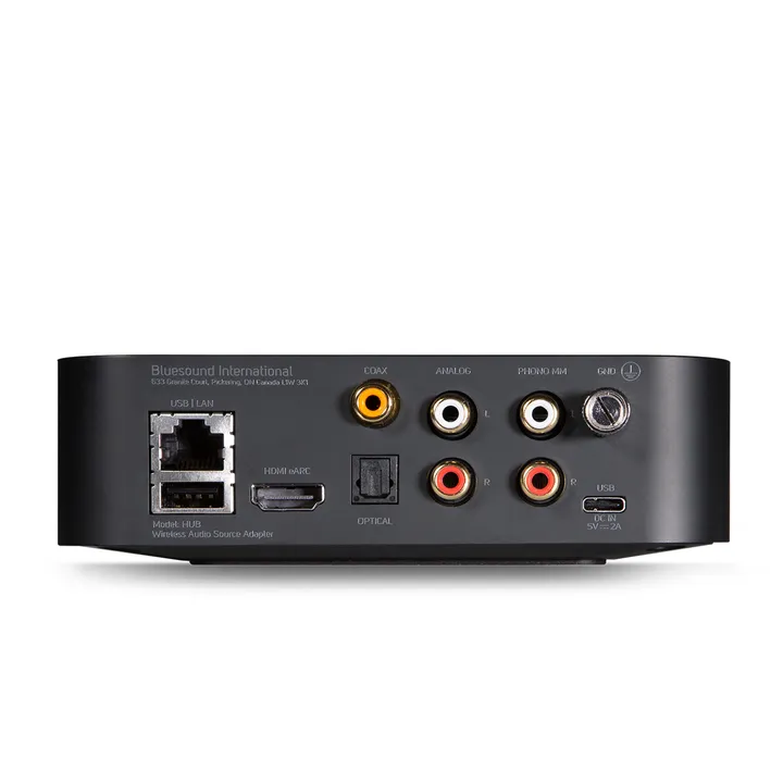 Bluesound HUB – adapter för smidig trådlös anslutning av TV, skivspelare och andra kabelbaserade ljudkällor i trådlösa BluOS-multiroom-system
