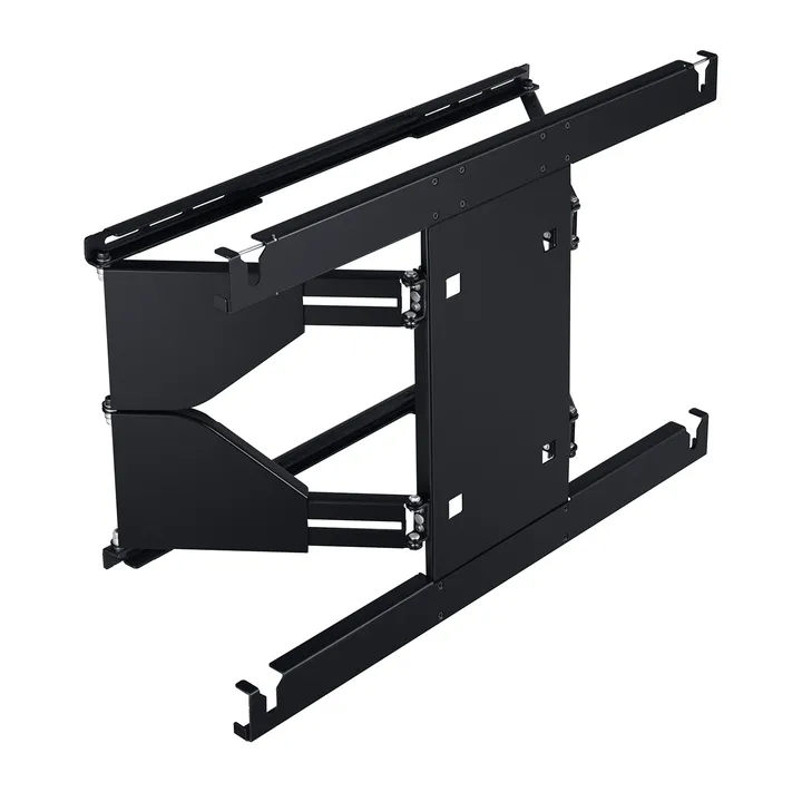 Full Motion Slim Wall-Mount (85”) har konstruerats med ett smart system av skenor som gör det enkelt att rikta in TV:n perfekt i våg efter montering. Det är skönt att veta när hålen i väggen ska borras.
